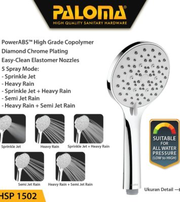Tingkatkan pengalaman mandi Anda dengan Paloma HSP 1502 Hand Shower. Dibuat dari material PowerABS copolymer grade...