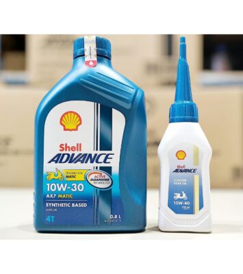 Paket Lengkap: Oli Matic Shell Advance AX7 0.8L 10W30 + Shell Oli Gear Motorcycle
