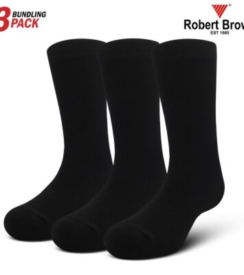 Kaos Kaki Sport Pria Robert Brown Katun Tebal 6000 Black (3 Pasang)