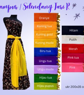 Fitur & SpesifikasiDetailNama ProdukSelendang Tari / Sampur Bahan SifonDimensi200 cm (panjang) x 35 cm...