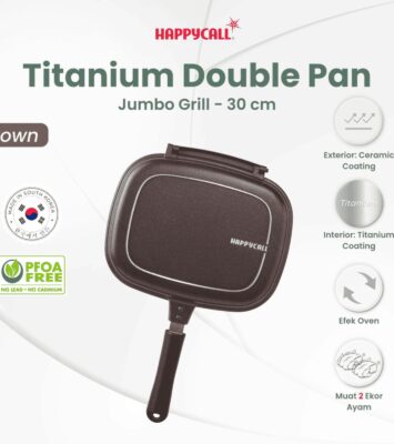 Happycall Titanium Double Pan Jumbo 30cm Grill Pan Anti Lengket – Brown