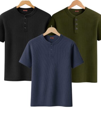 Paket Hemat 3 Kaos Knitwear Waffle Pria | Kancing Krah Sanghay
