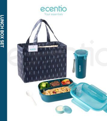 Ecentio 1200ml + 500ml Lunch Box Set dengan Gelas Anti Tumpah dan Kotak Saus | BPA Free