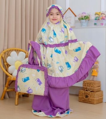 Mukena Anak Tas Sajadah 2in1 dengan Motif Karakter Lucu