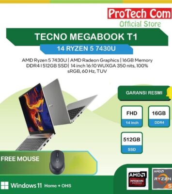 Rasakan pengalaman komputasi yang luar biasa dengan TECNO MEGABOOK T1 14. Laptop ultra-slim ini didukung oleh prosesor...