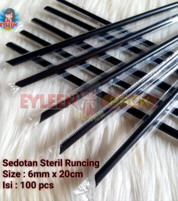 100 Pcs Sedotan Plastik Runcing Hitam 6mm x 20cm Higienis dan Steril
