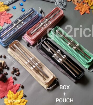 Paket Premium Sedotan Stainless Steel 5 in 1 + Kotak dan Pouch