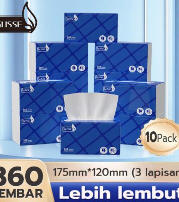 GLISSE Tisu Wajah 10 Pack | 3 Lapis Premium, 360 Helai | Harga Promo & Gratis Ongkir