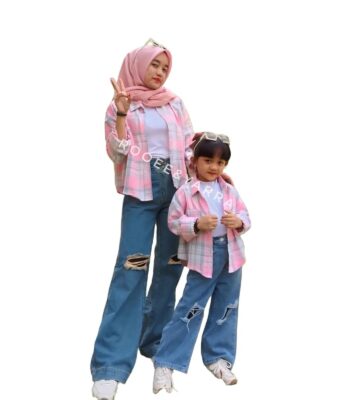 Kemeja Flannel Couple Ibu dan Anak Perempuan Usia 3-11 Tahun