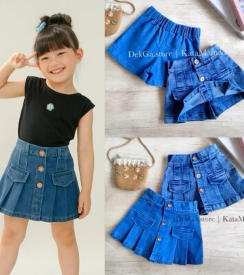 Rok Celana Bawahan 2in1 Anak Perempuan | Saku Kancing | Premium Jeans