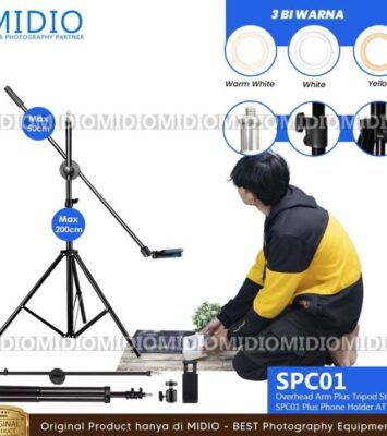 Midio Overhead Arm Spc01 + Tripod Stand 2m + Holder HP 360 – Paket Komplit untuk Flatlay & Video Stabil