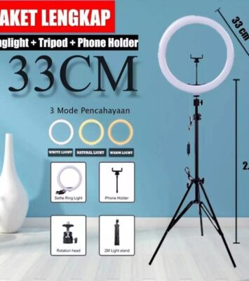 Ring Light LED 33cm + Tripod Paket Komplit Vlogger Make Up Live