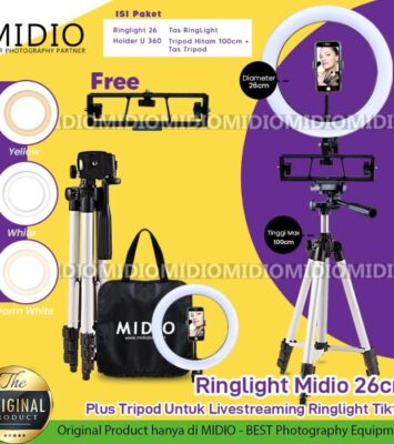 Ringlight Midio 26cm + Tripod 100cm + Holder U 360° + Bonus Socket 3 Sisi