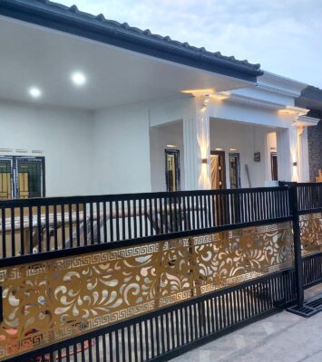 AspekSebelum RenovasiSesudah RenovasiFasad DepanTampilan sederhana, kurang tertata, dan terkesan kusam.Desain modern...