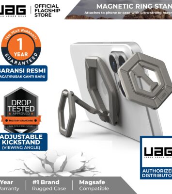 Temukan aksesori revolusioner yang mengubah cara Anda menggunakan iPhone! UAG Magnetic Ring Stand kompatibel dengan...