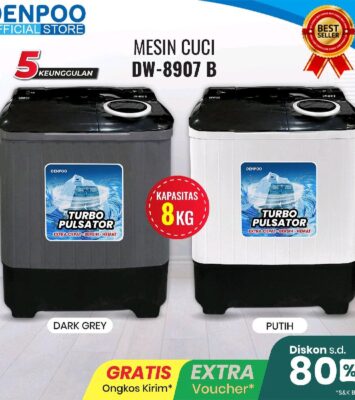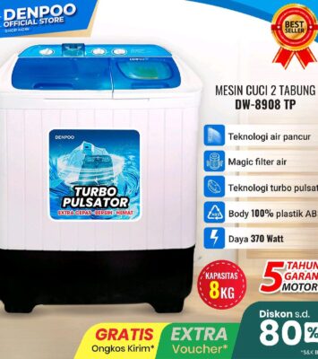 Denpoo Mesin Cuci 2 Tabung DW 8908 Turbo Pulsator – 8 Kg