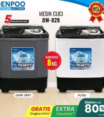 Mesin Cuci Denpoo 2 Tabung DW-828: Hemat Listrik, Hasil Bersih Maksimal