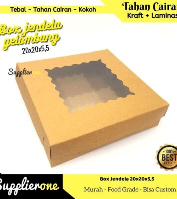 Spesifikasi ProdukDetailNama ProdukBox Catering Jendela / Dus MakananUkuran20x20x5.5 cmBahanKraft 290 gr (Food Grade,...