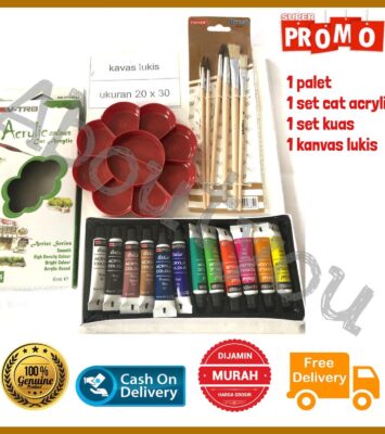 Paket Lukis Komplit 4 In 1: Kanvas, Cat Akrilik, Palet, & Kuas Set Melukis