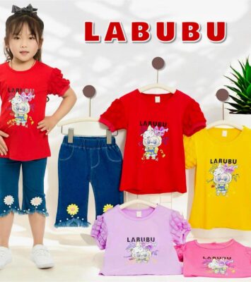 Setelan Jeans Cutbray Rawis Anak Perempuan Motif Labubu – Paket Hemat 2 Setel