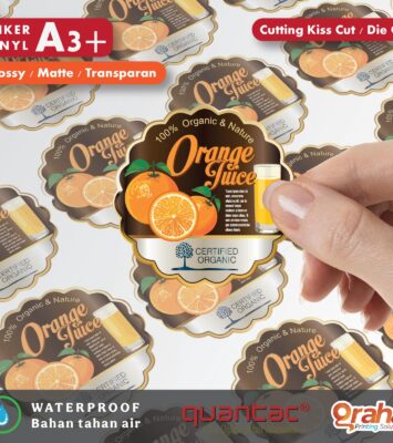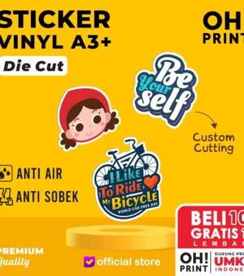 Cetak Stiker Vinyl A3 Tahan Air, Glossy Elegan Atau Doff Mewah, Sudah Termasuk Cutting – Bikin Brand Kamu Makin Profesional!