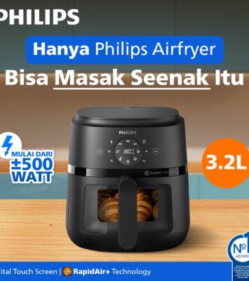 Hanya Philips Airfryer yang bisa menghadirkan cita rasa seenak itu! Kini hadir dengan desain compact 3.2 L dan jendela...