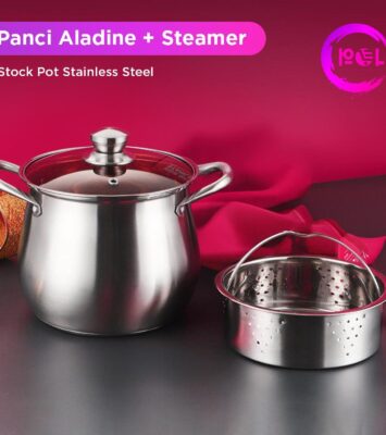 Panci Stainless Steel Aladin 22cm dengan Steamer | Stock Pot Berkualitas untuk Dapur Modern