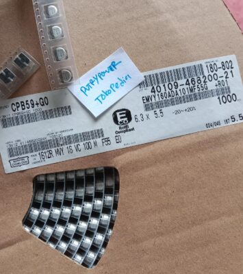 SpesifikasiDetailTipeKapasitor Elektrolit Solid (Elko SMD)Kapasitansi100 Mikrofarad (100uF)Tegangan Kerja16 Volt DC...