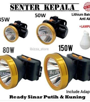 Senter Kepala Super Terang 20W hingga 150W untuk Camping & Darurat