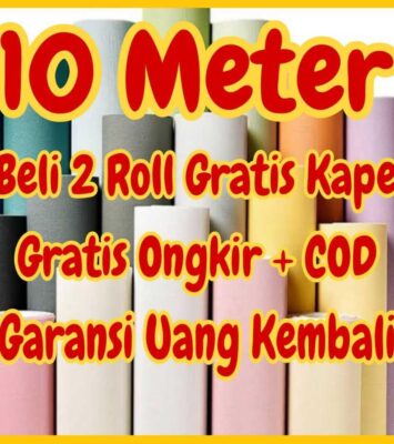 Wallpaper Dinding Premium 10 Meter x 45 cm Motif Polos Hijau Biru Abu-Abu Putih