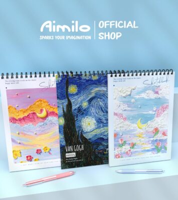 Aimilo Sketch Book Aesthetic Buku Gambar A4 Vertikal Jilid Spiral 45 Lembar/90 Halaman Paper Stationery