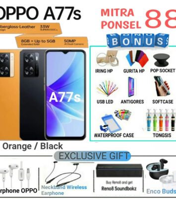 Fitur UtamaSpesifikasi OPPO A77sLayar6.56 inci, IPS LCD, Refresh Rate 90Hz, Kecerahan hingga 600 nitsDesainSunset...