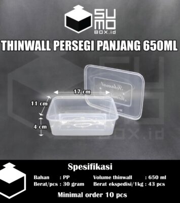 Kotak Makan Plastik Thinwall Persegi Panjang 650ml [Minimal Order 25 pcs]