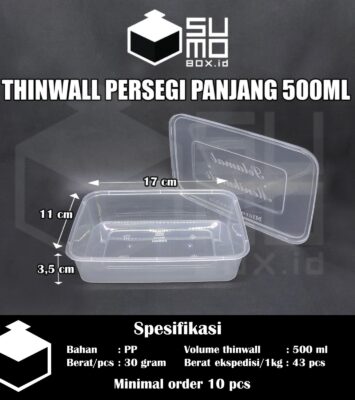 Kotak Makan Plastik Thinwall Persegi Panjang 500ml [Minimal Order 25 pcs]
