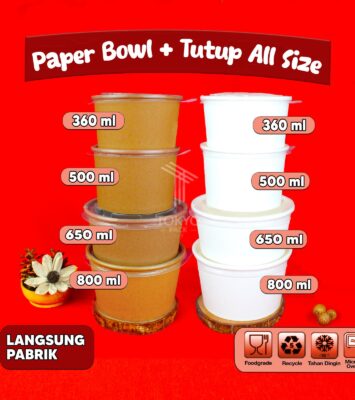 Paper Bowl + Tutup Nesto All Size / Mangkok Kertas / Paper Rice Bowl