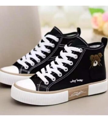 Sneakers For & Nice Kids’ Women Black – Sepatu Fashion Anak Cewek Korea Style Hitam Tinggi