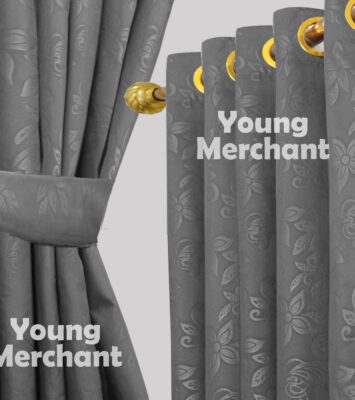 Tirai Pintu dan Gorden Jendela Polos Embos Smokering 12 Lubang Korden Abu Tua