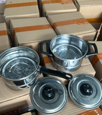 Panci Kukus Kecil 16cm Stainless Dengan Tutup Dan Pegangan Hitam