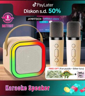 Jovitech 2in1 Karaoke Set Mini Speaker S51 (K12): Portable Dual Mic RGB KTV dengan Suara Bass Tahan Lama