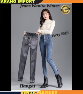 Celana Jeans Winter Longjohn Musim Dingin Salju Tebal Hangat Import Wanita
