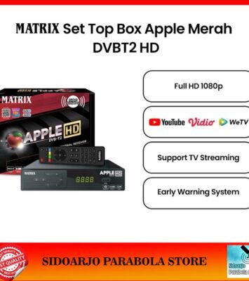 Siap nikmati siaran televisi digital yang lebih jernih dan stabil tanpa biaya bulanan! Set Top Box Matrix Apple Merah...