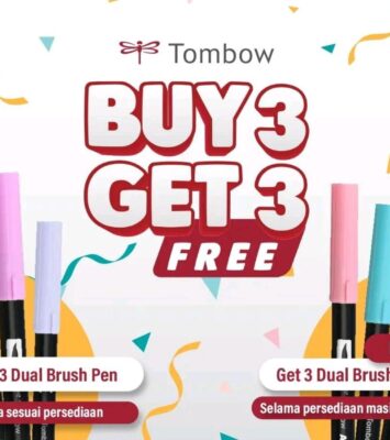 Dapatkan promo spesial Tombow Dual Brush Pen dengan konsep Beli 1 Gratis 1! Setiap pembelian 1 buah pen warna pilihan...