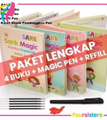 Sank Magic Practice Copybook: 4 Buku + 1 Pulpen Ajaib untuk Belajar Menulis Tanpa Ribet!