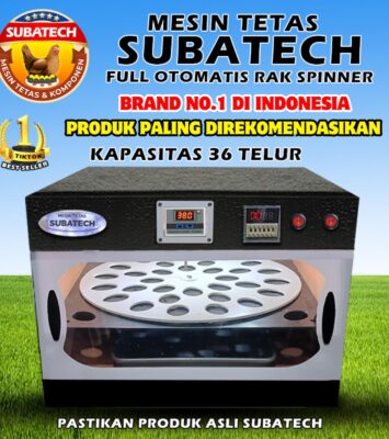 Mesin Tetas Telur Full Otomatis Penetas Rak Spinner 36 Subatech
