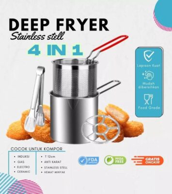 Mini Deep Fryer Set 4 in 1: Penggorengan & Panci Multifungsi Stainless Steel
