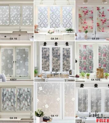 Sticker Kaca Sandblast Es Motif Lebar 90 cm