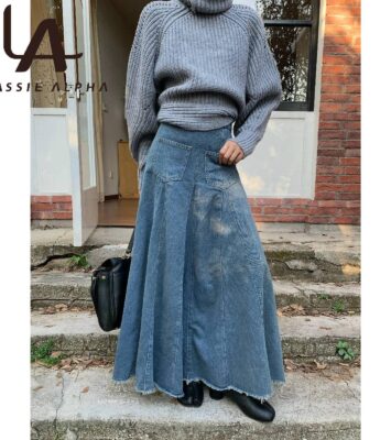 Rok Denim A-Line Pinggang Tinggi Gaya Korea – Tampil Modis dan Nyaman Setiap Hari