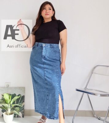Rok Span Jeans Size 4-6XL | Pinggang Karet Nyaman & Tampil Stylish!