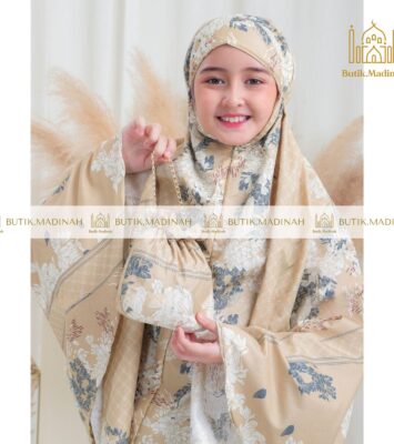 Butik.madinah Mukena Anak Tanggung Azura Hasya 2in1 Resleting Travel Katun Motif Atasan Cantik Muslim Panjang