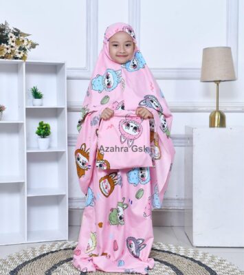 Mukenah Anak Labubu Lengkap dengan Tas untuk Umur 6-11 Tahun